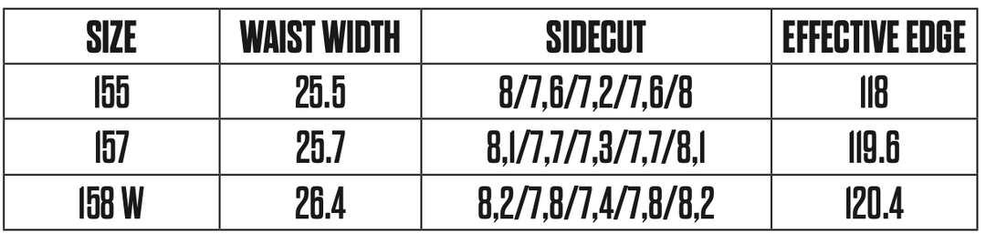 | Men's Boot | Women's Boot | Board Width (Waist) |