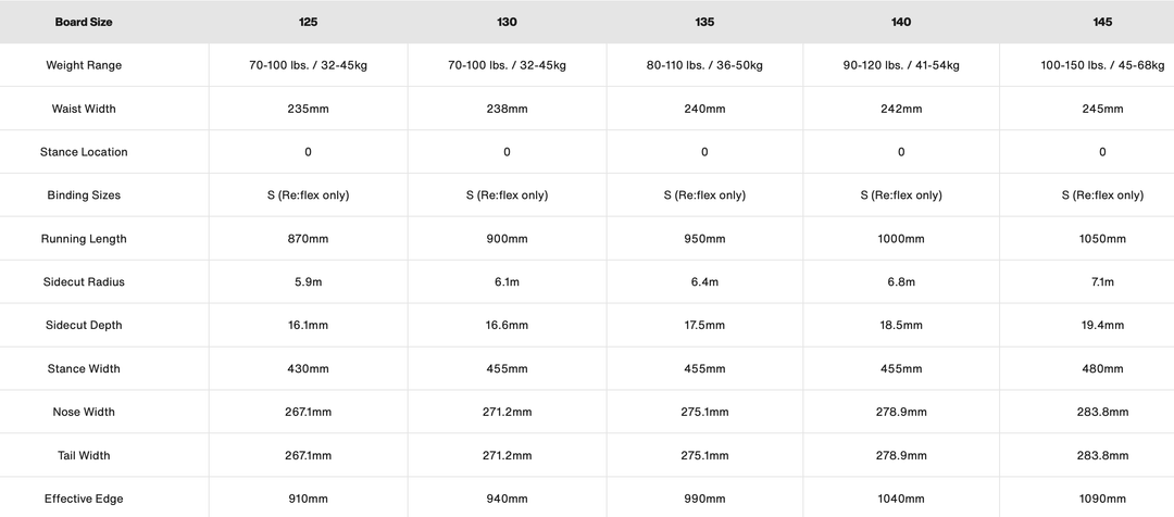 | 125 | Up to 5Y | Union XS-S (Kids) Burton S-L (Kids) Ride S (K-1 or Micro) |