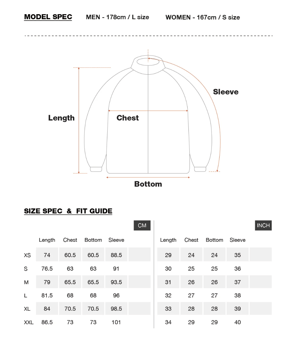 - Elastic string & stopper applied to hood and hem for easy size adjustment