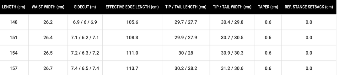 Grip Tech 3.25mm – A tri-radial sidecut design that is not "blended." Natural shaping intersections, that in the past were eliminated, have been transformed into heel and toe contact points that provide a direct, more ergonomic way to grip the snow when additional control is needed.