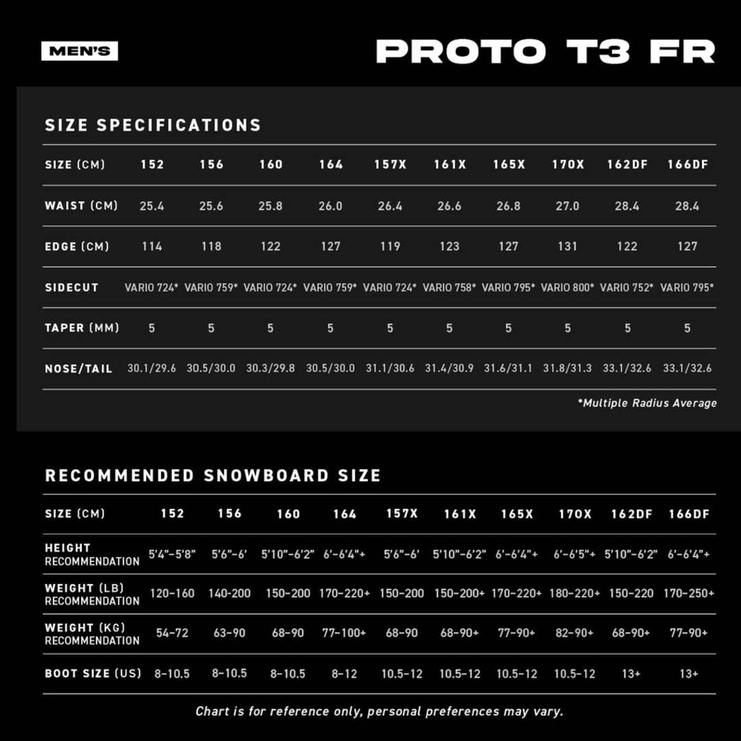 The 2026 Never Summer Men's Proto T3 FR seamless blends brand new Prototype 3 tech with the fan favourite Proto FR to create a hard charging board that loves to be ridden all over the mountain. This aggressive snowboard excels both on and off piste thanks to the tapered directional shape, stiffer flex pattern, and Triple Camber Hybrid profile, making it incredible responsive and able to handle whatever is in its way. The most innovative snowboard just got even better.
