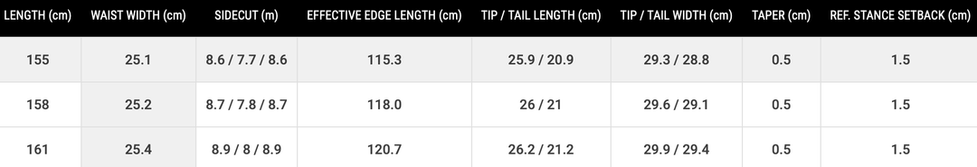 Tip: If you're between sizes or ride with high binding angles, consider going wider to prevent toe/heel drag.