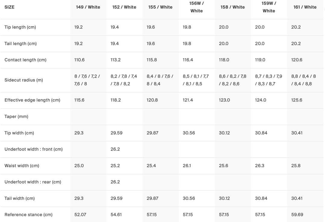 | Men's Boot | Women's Boot | Board Width (Waist) |