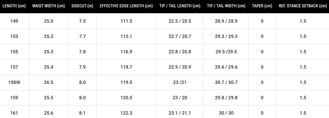 Tip: If you're between sizes or ride with high binding angles, consider going wider to prevent toe/heel drag.