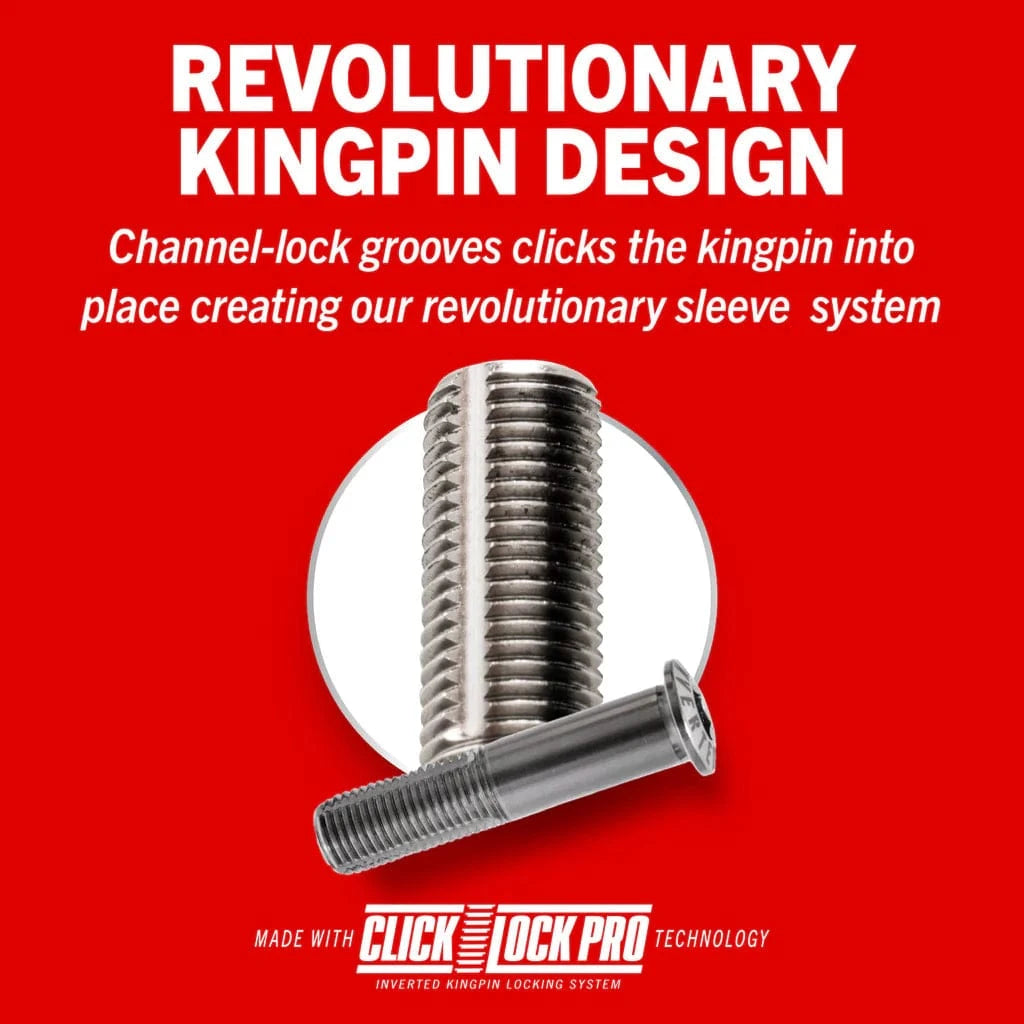 Engineered for maximum durability, unrivaled performance, precision tuning and guaranteed lowest grind clearance of any kingpin on the market.