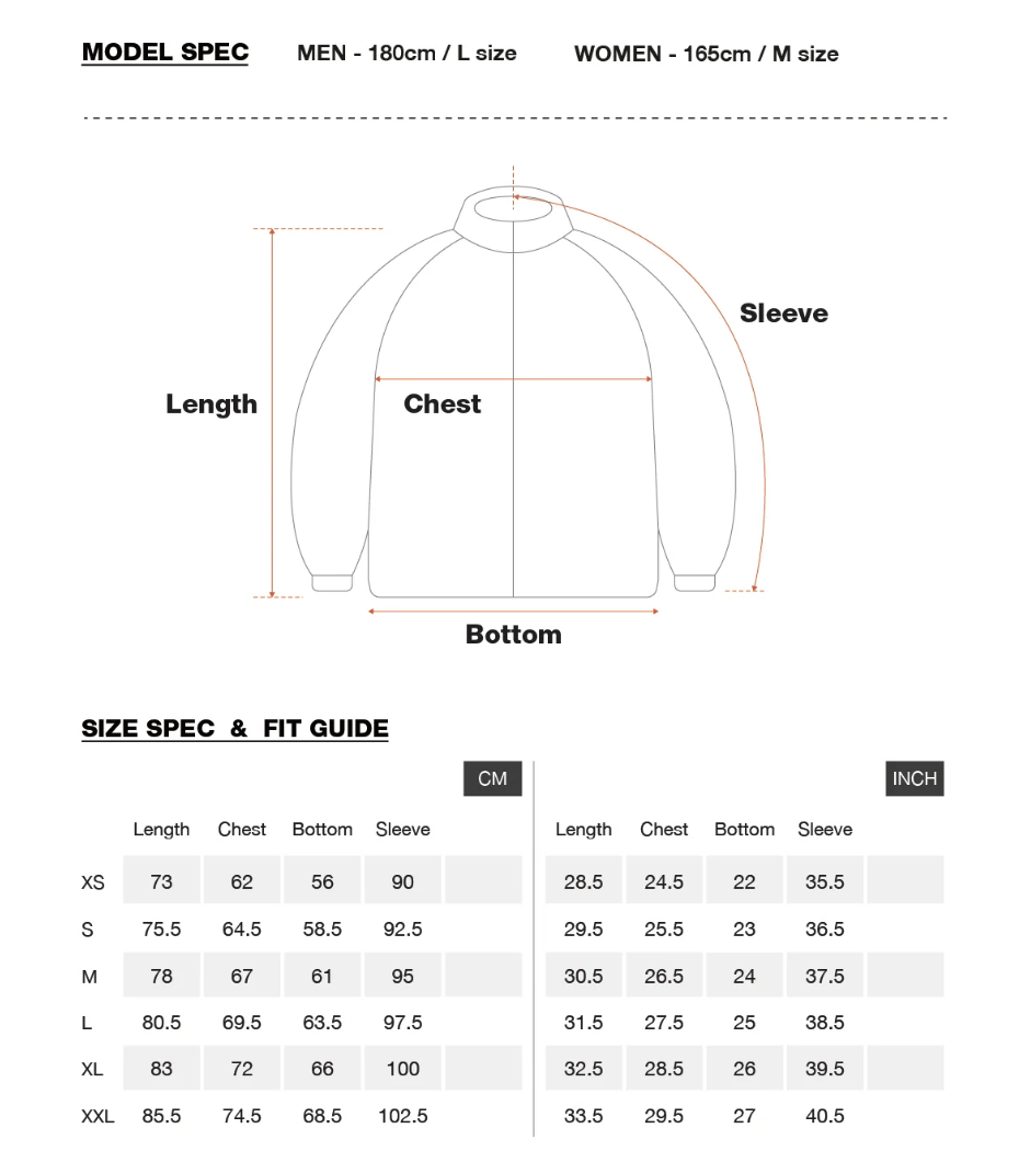 - Elastic string & stopper applied to the hood and hem for easy size adjustment